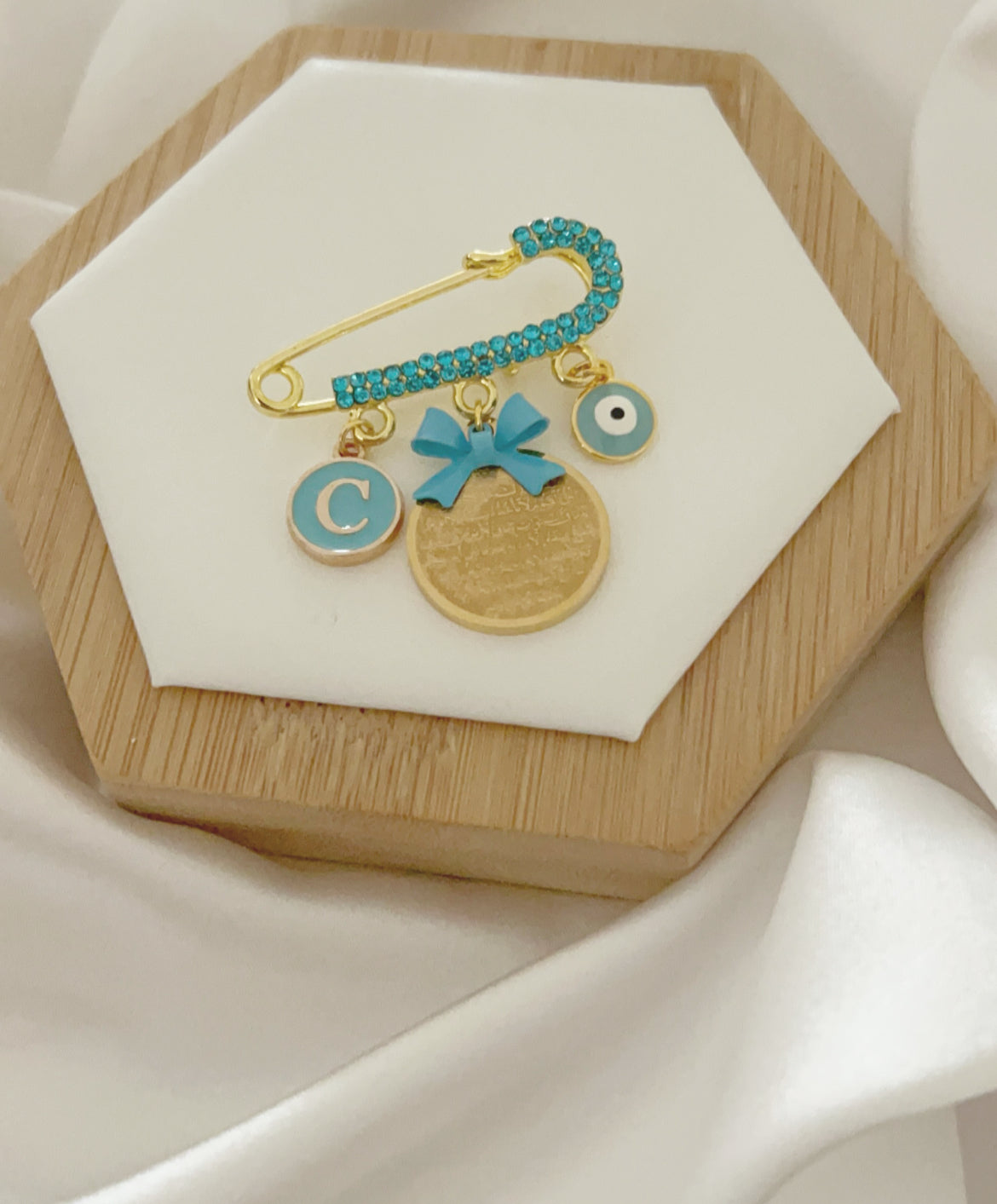 Timeless and full of meaning, the Nadir pin is a delicate keepsake crafted to honor a baby’s blessed beginning. This tiny pink and gold-plated pin is accented with soft blue crystal touches, adding a gentle shimmer that catches the eye and the heart.